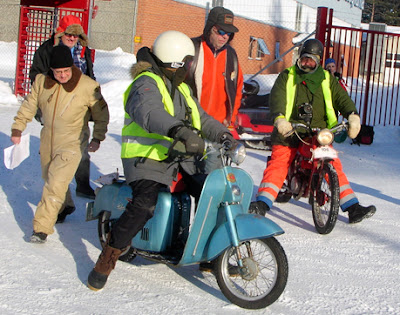 Molto freddo e tanti neve, ma il scooter svedese d'Epoca andave come una Vespa!
